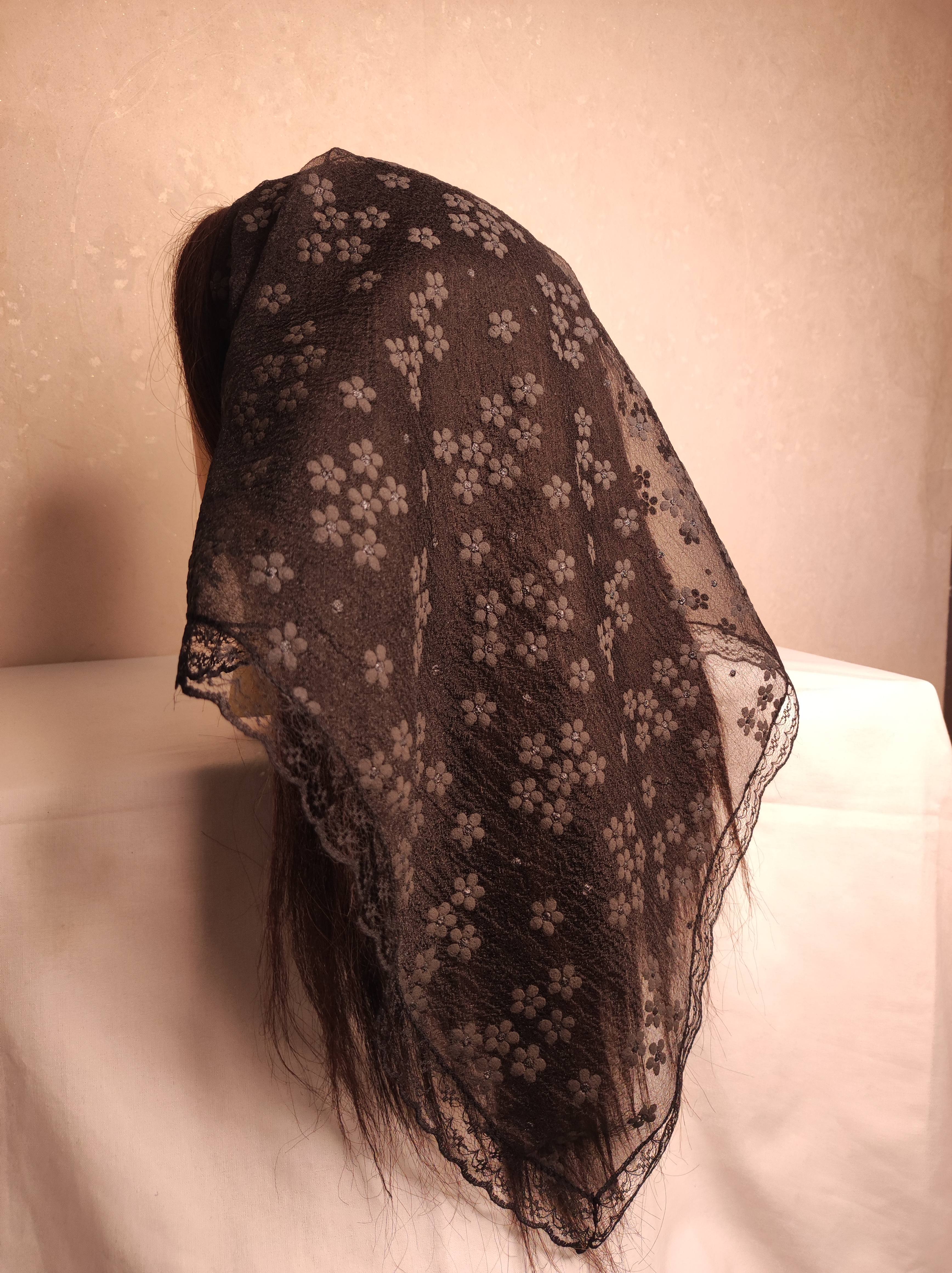 تل اسکارف مشکی ساده تور دوزی شده مینی گالری
