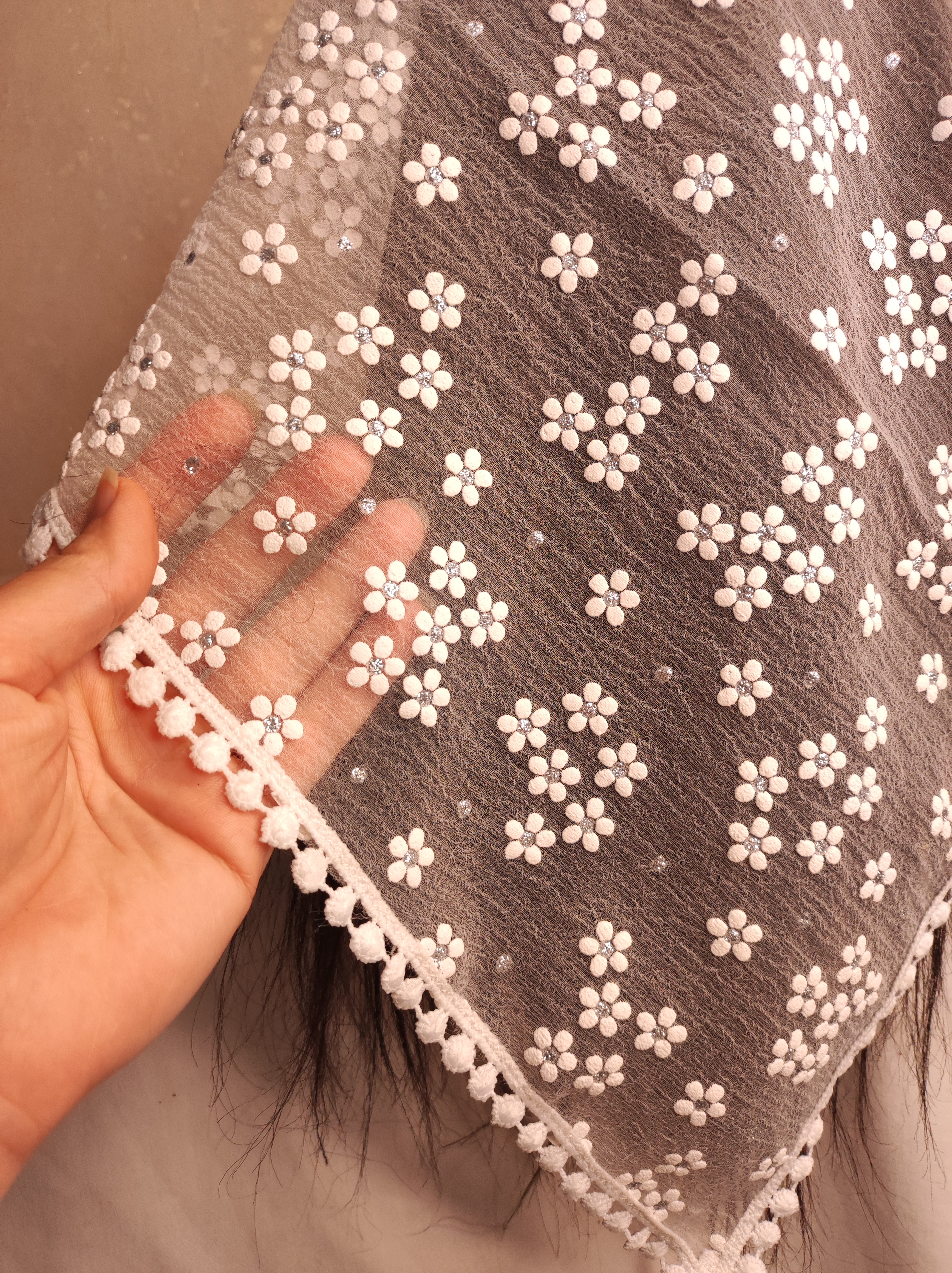 تل اسکارف تور گل گلی سفید تور دوزی مینی گالری