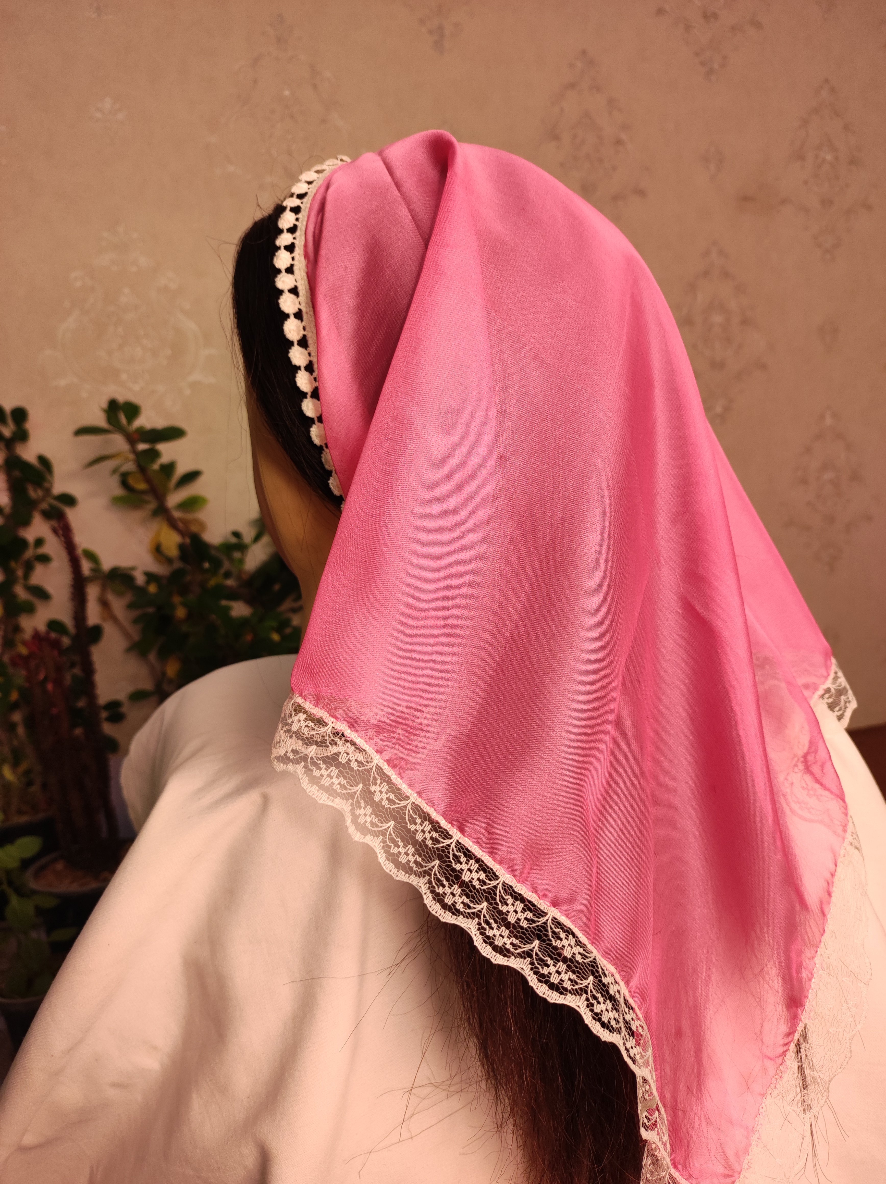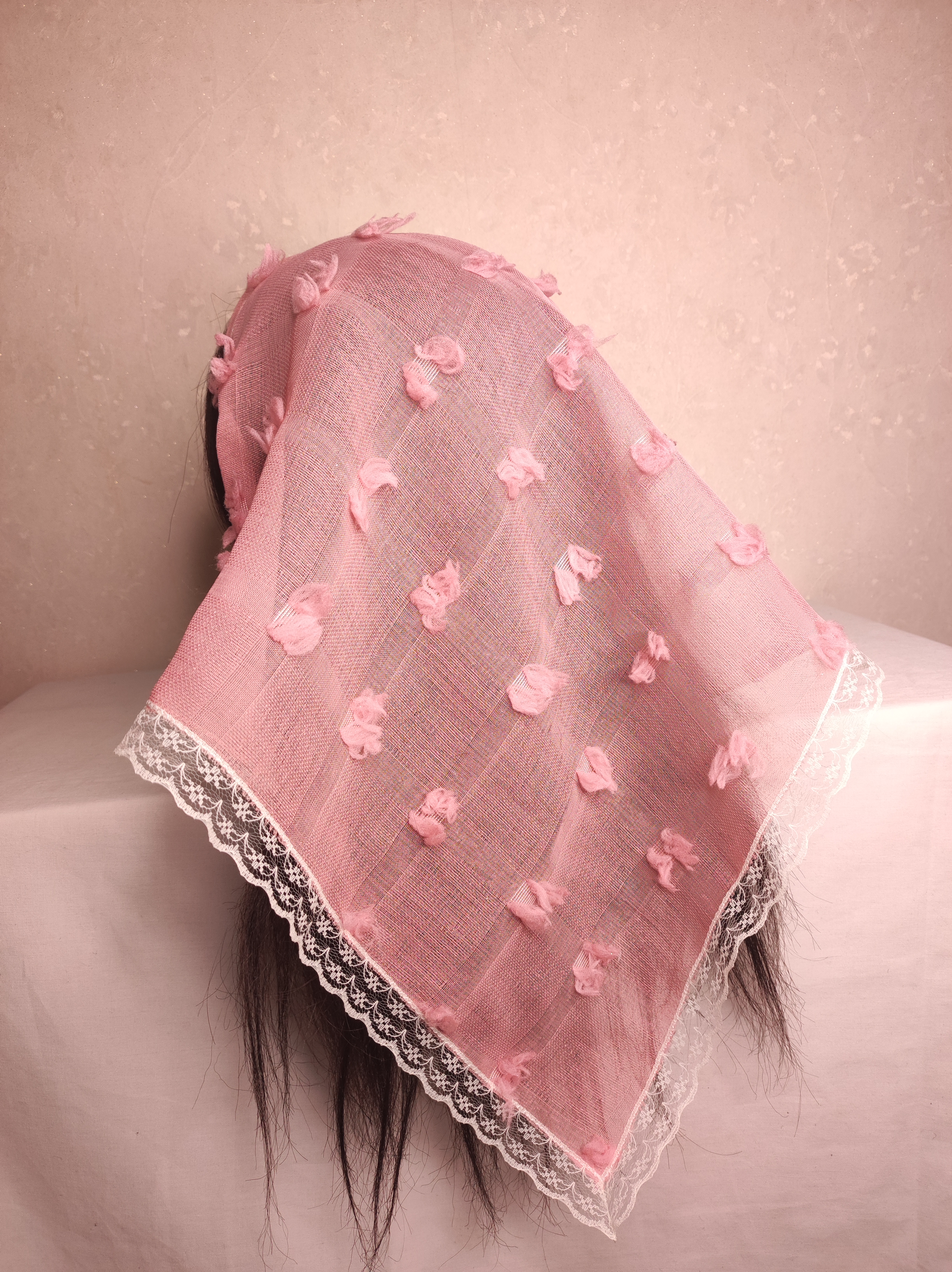 تل اسکارف حریر صورتی لبه عدسی پایین تور مینی گالری