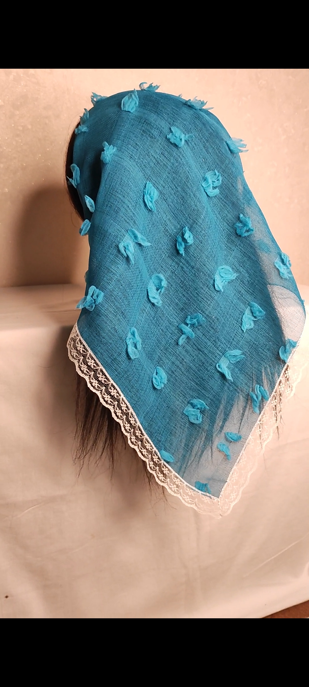 تل اسکارف گل برجسته لبه تور رنگ آبی مینی گالری