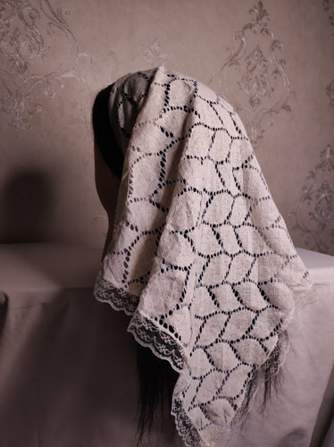تل اسکارف تور گل گلی سفید تور دوزی مینی گالری