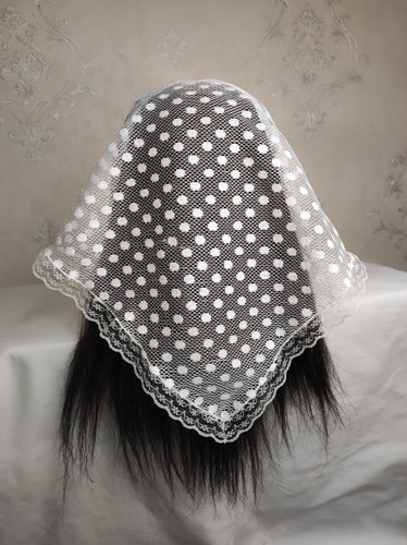 تل اسکارف تور دانتل خال خالی سفید مینی گالری